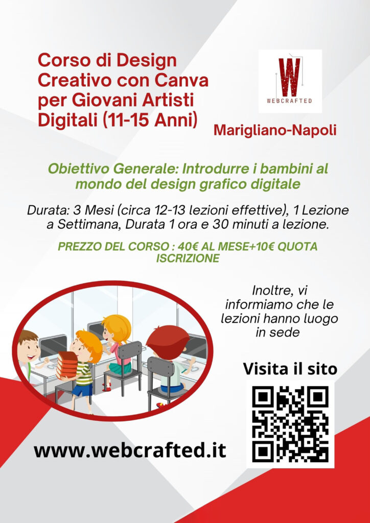 E per iniziare al meglio il nostro percorso nel mondo della creatività digitale, Webcrafted è lieta di presentare il suo primo corso dedicato ai più piccoli: ‘Design Creativo con Canva per Giovani Artisti Digitali’ (11-13 anni). Un’opportunità unica per i giovani talenti di esplorare il design in modo divertente e stimolante!“